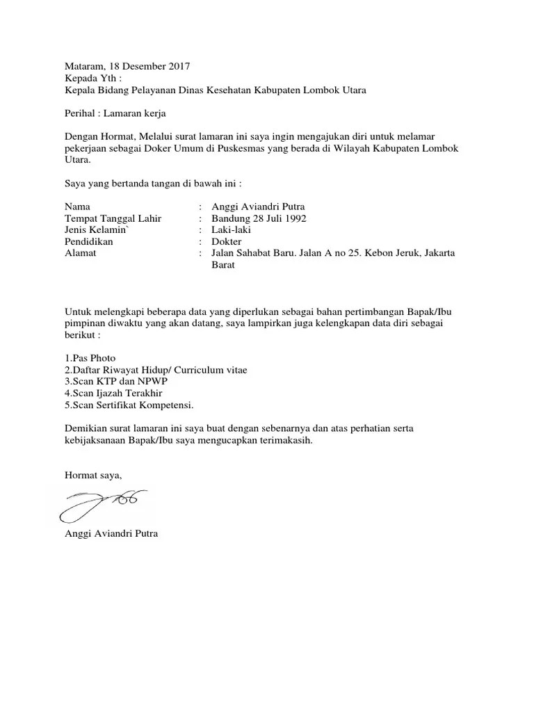 Contoh Surat Lamaran Kerja Dokter Ke Dinas Kesehatan / Contoh Surat Lamaran Kerja Di Klinik Dokter Umum Contoh Surat / Uptd puskesmas dtp senang gembira.